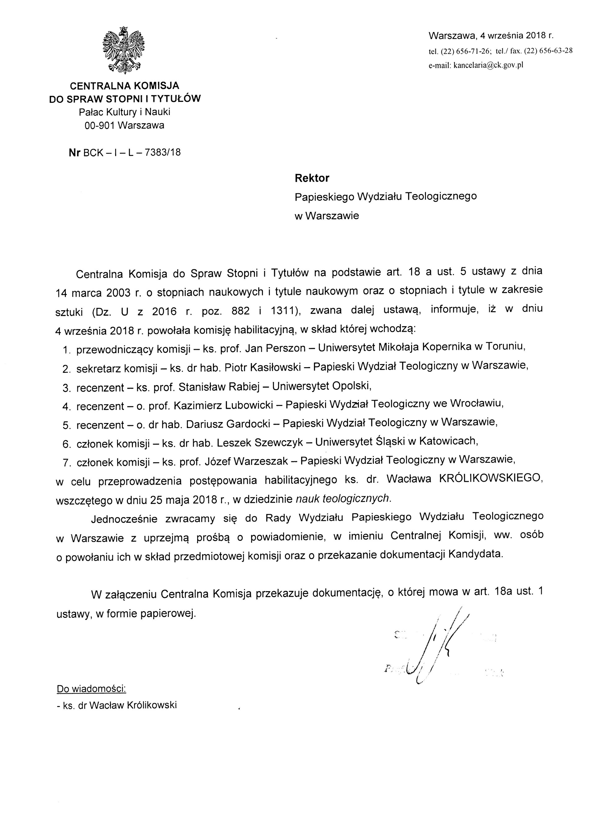 Powołanie Komisji Habilitacyjnej (04.09.2018)